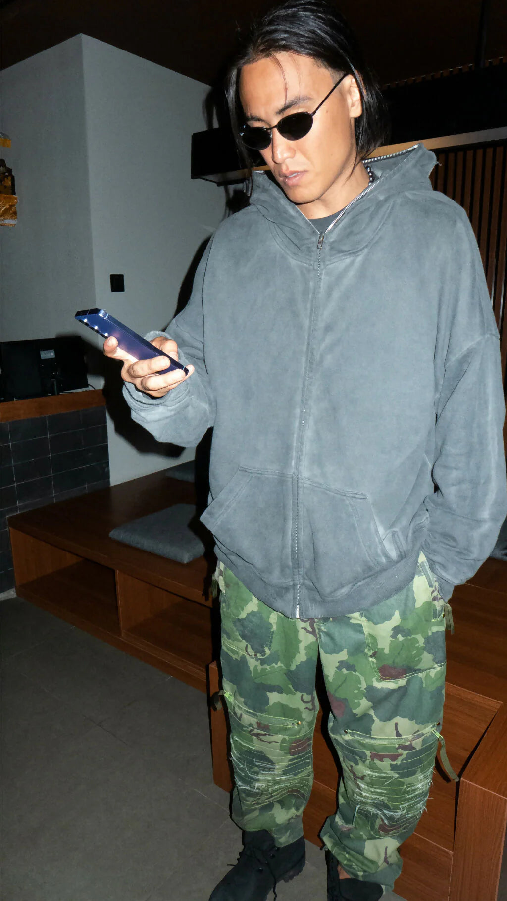Full Zip Asphalt Hoodie made from 100% cotton.